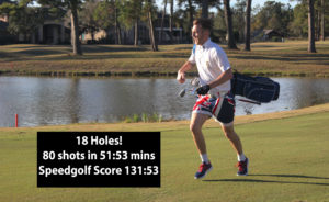 Organiser Scott Dawley was keen  to try something new at this Inaugural Speedgolf USA event, so in addition to the 18 holes, the top 4 men also completed a 9 hole playoff. In a departure from regular Speedgolf, each hole was played individually, Sprintgolf style, and the cumulative Speedgolf score from each of the holes was added to the 18 hole score. USA’s Mack McClain took advantage and after the tense playoff managed to snatch the glory of the championship title producing the lowest Speedgolf Score over the 27 holes. Congratulations Mack, he is a fantastic athlete and demonstrates that you really can combine golf precision with an extremely fast pace!